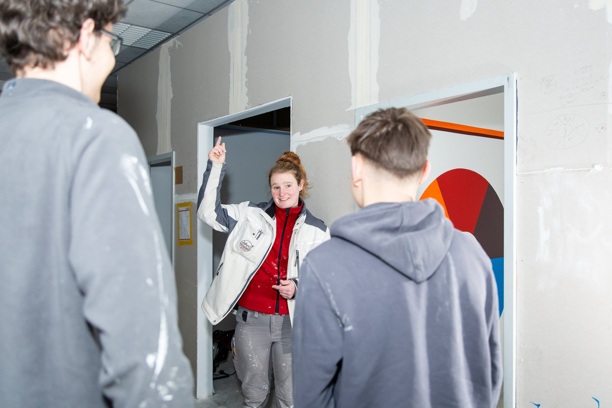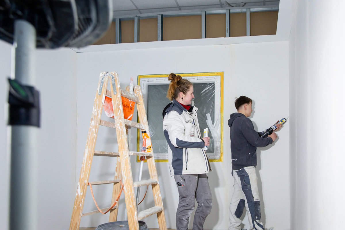 Zuletzt führte unsere Malergesellin Steffi mit vier Auszubildenden eine intensive Praxiswoche in unseren Trockenbauräumen durch, in der sie ihr Können gezielt weiterentwickelten. Dabei standen unter anderem folgende Inhalte im Fokus: