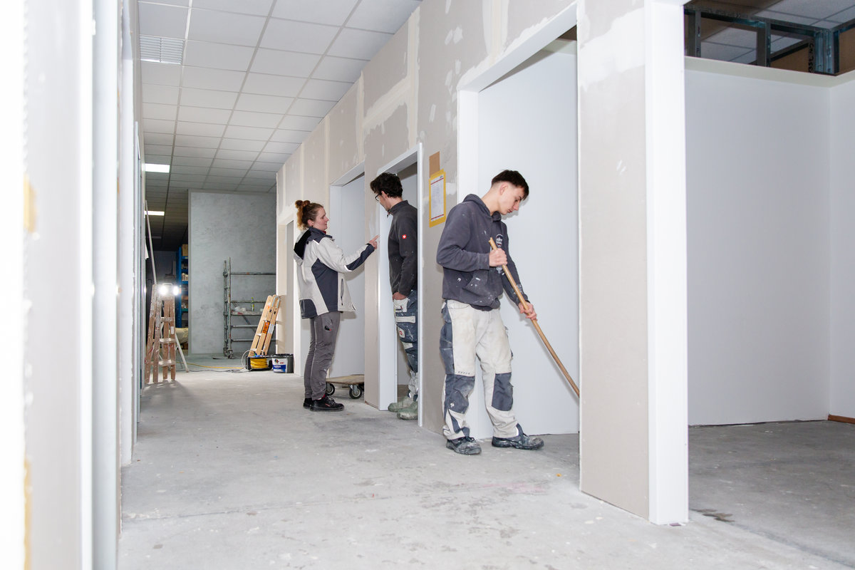 Das Besondere: Die Räume funktionieren wie echte Baustellen – jedoch ohne realen Kunden und ohne Zeitdruck. Hier darf ausprobiert, analysiert und optimiert werden. Wenn etwas noch nicht ganz passt, wird nachgebessert und verbessert. So entsteht Schritt für Schritt Sicherheit im Arbeitsablauf und ein professioneller, effizienter Arbeitseinsatz für zukünftige Projekte.